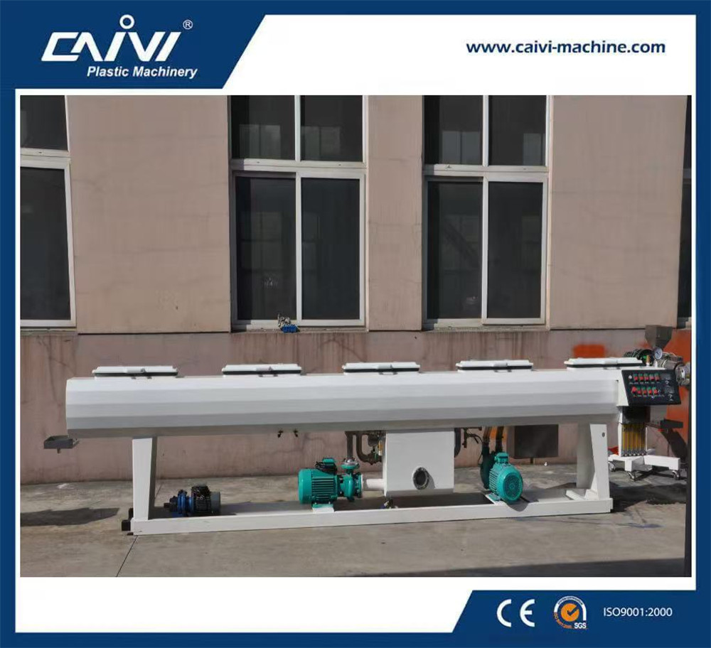 PE系列塑料管材生產線主要用于農業和建筑領域產生供水和排水的管道。本設備主要由真空箱,牽引機,切割機,堆料架組成。
